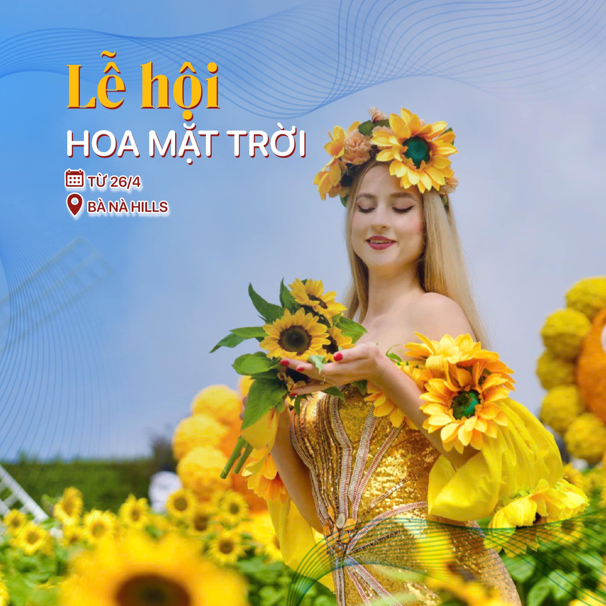 - Lễ hội hoa mặt trời trên đỉnh Bà Nà Hills, biến khu làng Pháp trở thành không gian rực rỡ sắc vàng như trời Âu.