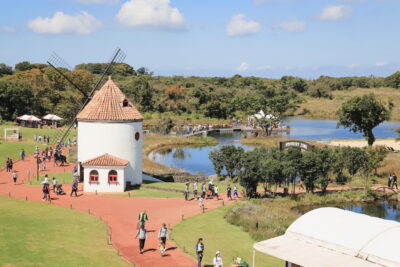 Nhà thờ Banju: Được xây dựng bởi nhà kiến trúc sư nổi tiếng Jun Itami với hình ảnh thể hiện câu chuyện Con thuyền của Noah trong Kinh thánh, kiến trúc của nhà thờ này trông như đang trôi nổi trên mặt nước trong chiếc ao ở phía trước. Nước xung quanh nhà thờ phản chiếu đường chân trời đại dương từ phía xa. Mái nhà của nhà thờ được ốp bằng đá với một loạt màu sắc từ bạc sang xanh đến đen, tất cả lấp lánh dưới ánh mặt trời trông như những chiếc vảy cá.