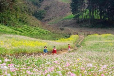 - Thăm quan thung lũng hoa lớn nhất Mộc Châu với đủ các loài hoa xuân tây bắc: Cải vàng, cải trắng, tam giác mạch, hoa đào …. và hơn 40 loài hoa khác.