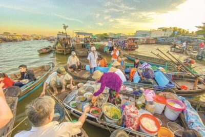 07h00: Quý khách tham quan chợ nổi Cái Răng Cần Thơ để tìm hiểu đời sống sinh hoạt trên sông của người dân địa phương. Chợ nổi Cái Răng là chợ nổi chuyên trao đổi, mua bán nông sản, các loại trái cây, hàng hóa, thực phẩm, thành phố Cần Thơ. Đây cũng là chợ đầu mối chuyên mua bán sỉ các loại trái cây, nông sản của vùng. Hòa mình vào không khí nhộn nhịp của buổi chợ, quý khách có thể quan sát, tìm hiểu sinh hoạt của nhiều gia đình thương hồ với nhiều thế hệ chung sống trên ghe.
