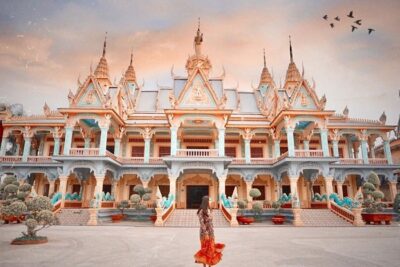 08h00: Đoàn khởi hành đi Cà Mau, trên đường ghé Sóc Trăng tham quan: Chùa Bôtum Vong Sa Som Rong (còn gọi là Chùa Wath Som Rong) – là nơi đang hot nhất Sóc Trăng trên MXH facebook, mang hơi hướng kiến trúc chùa cổ của người Khmer, mới nhìn sơ qua có thể nhiều người nhầm lẫn với các ngôi chùa của Thái Lan.